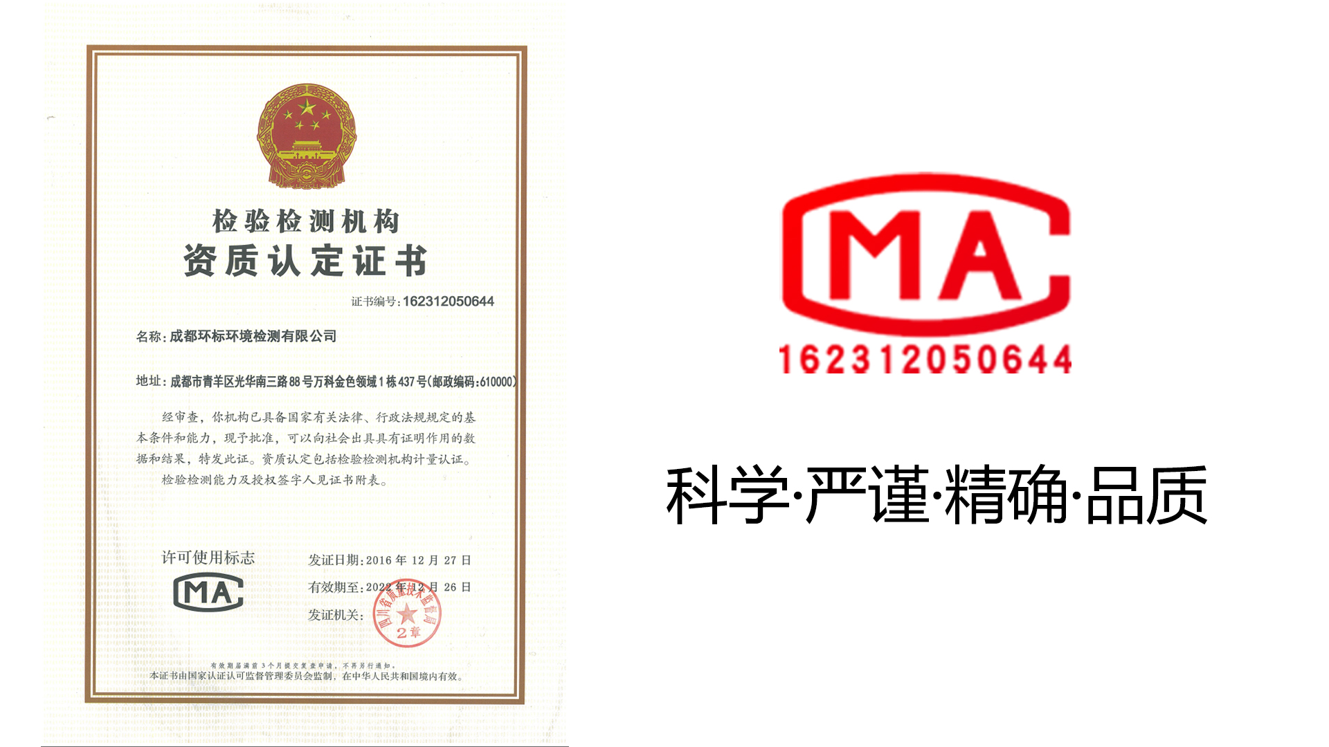 成都環標環境檢測有限公司成立于2014年,是經四川省質監局審批通過的第三方獨立檢測機構。地處成都市青羊區光華南三路88號萬科金色領域,毗鄰樹德中學光華校區,公司擁有自己的獨立檢測實驗室。GC、UV、紅外光分析儀、雙路智能煙氣采樣器、綜合大氣采樣器等多種先進的采樣和分析儀器。公司根據國家標準檢測方法,科學準確的進行檢測判斷,客觀作出檢測數據,所出具的報告數據具有法律效力。   作為第三方檢測機構,我們的特色是:1、具備CMA資質。2、設備、人員一應俱全3、快速出具專業檢測報告4、擁有一對一定制式服務我公司具有完整的管理運作體系,擁有一支由碩士、...